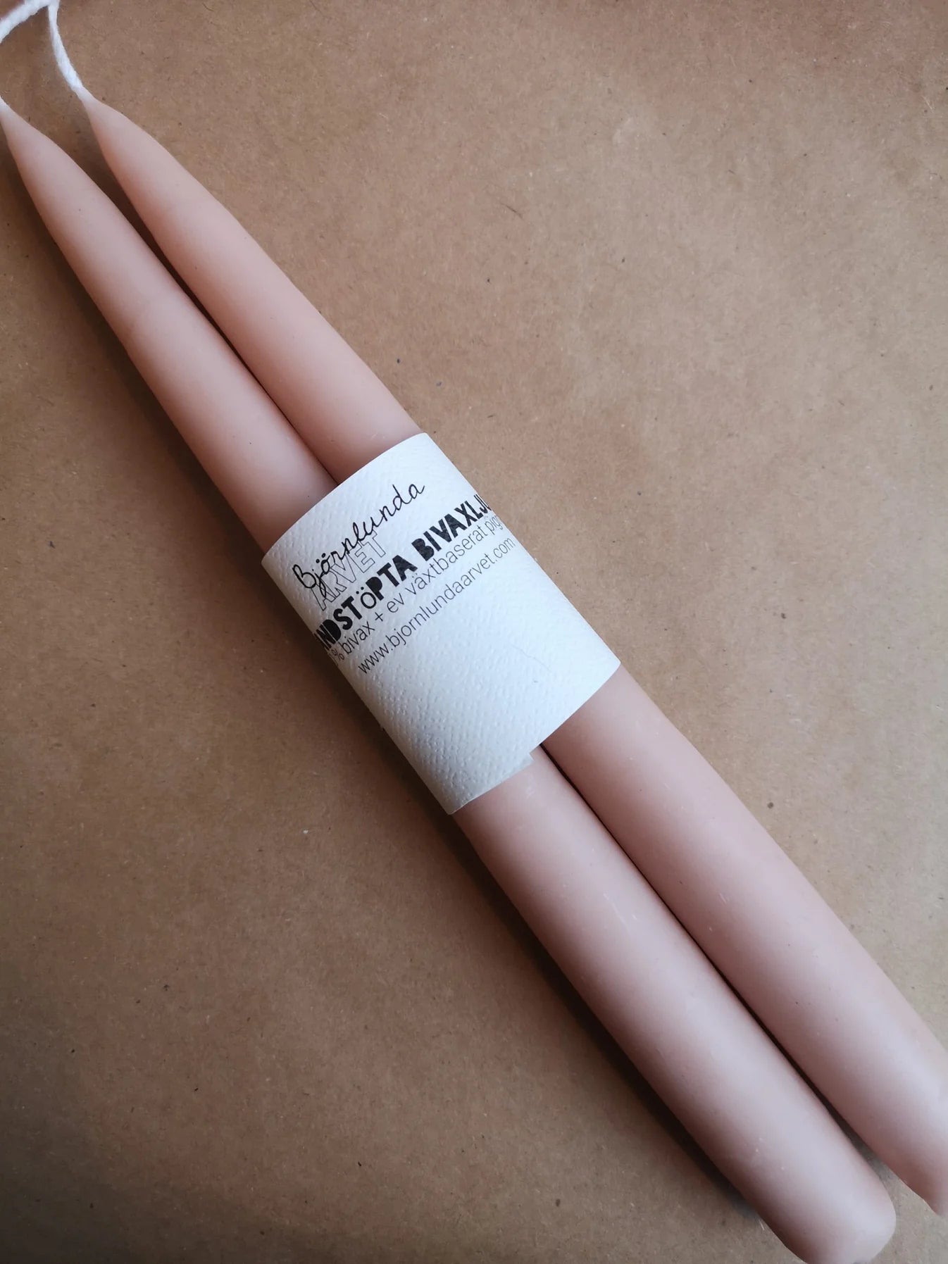 Bivaxljus från Björnlunda Arvet färgen Nyponros. Lokalt bivax