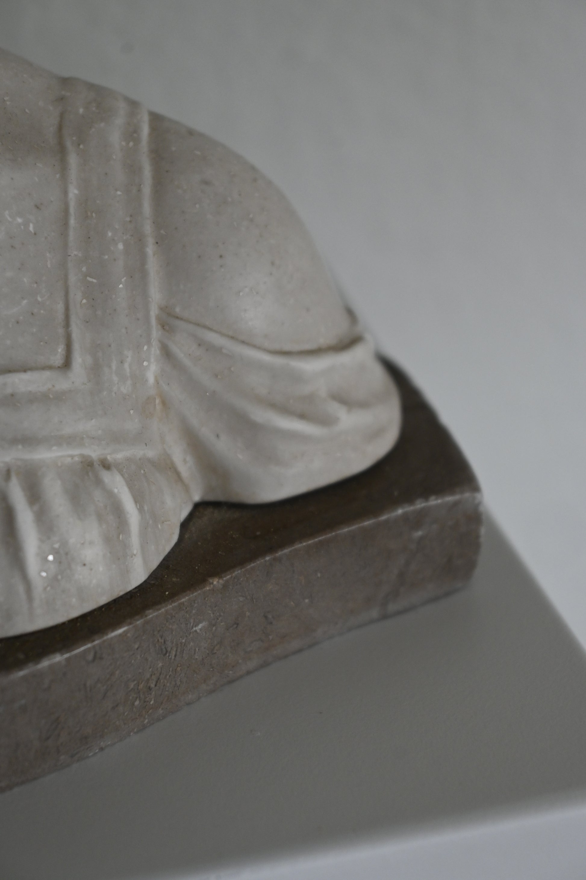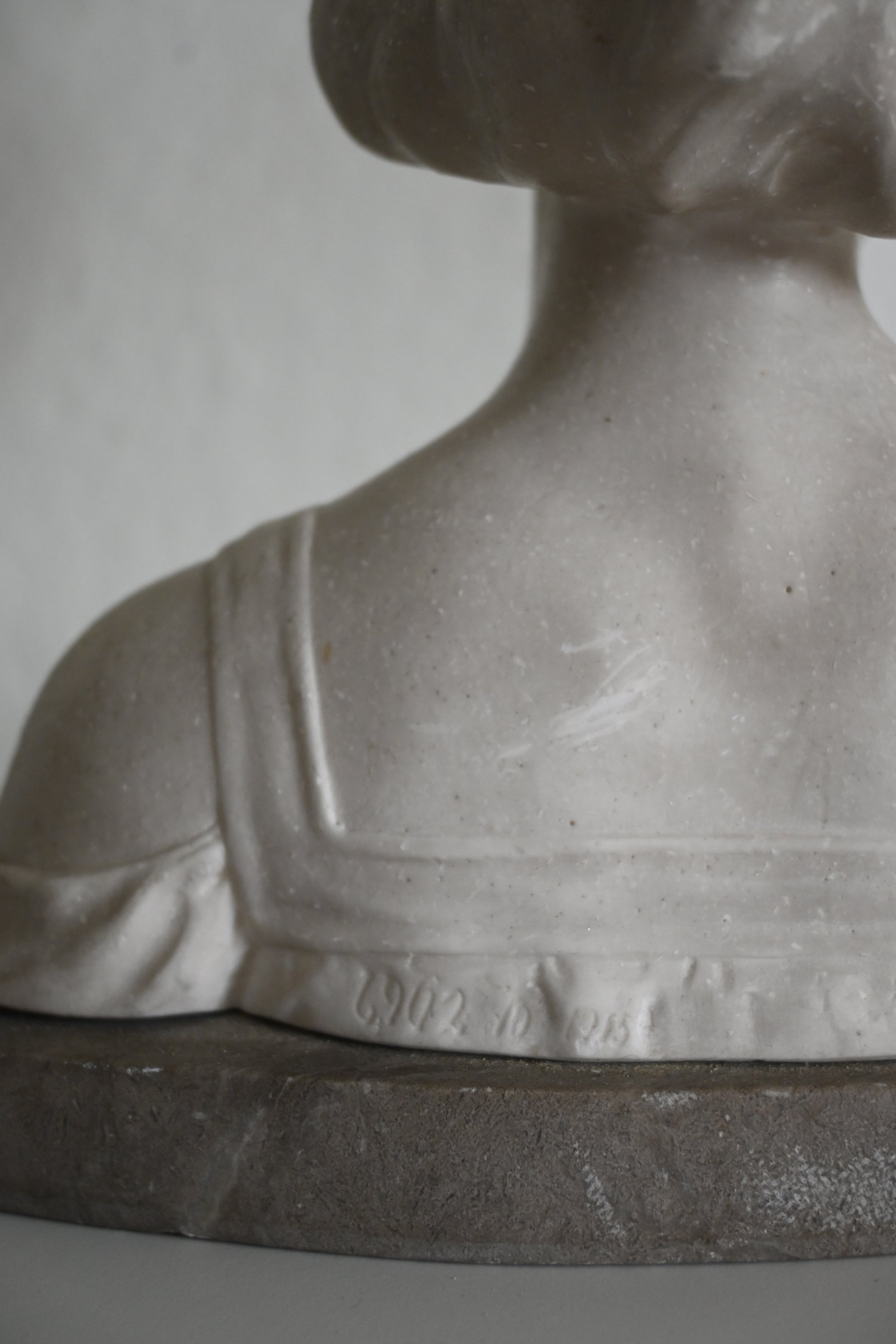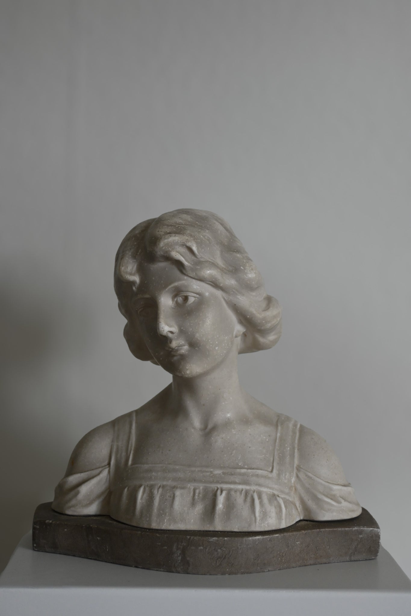 Kvinnobyst i sten på marmorplatta