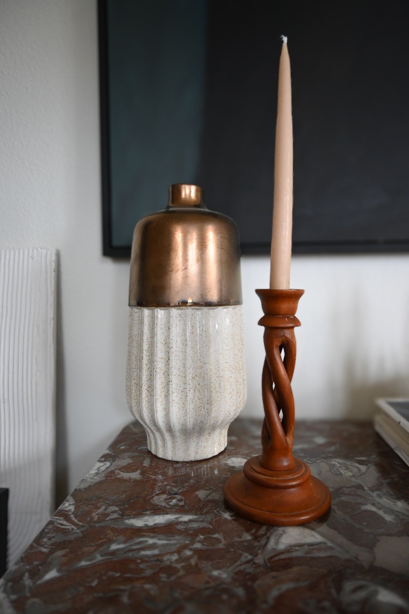 Vintage ljusstake i träsmide