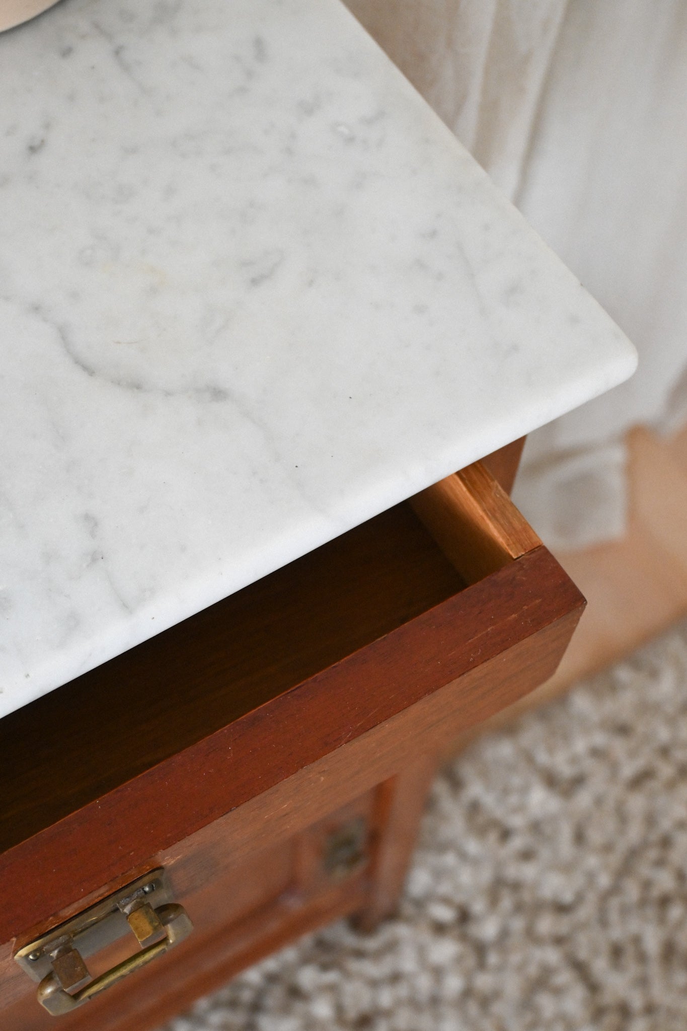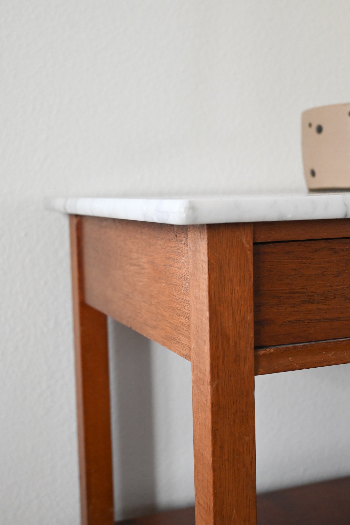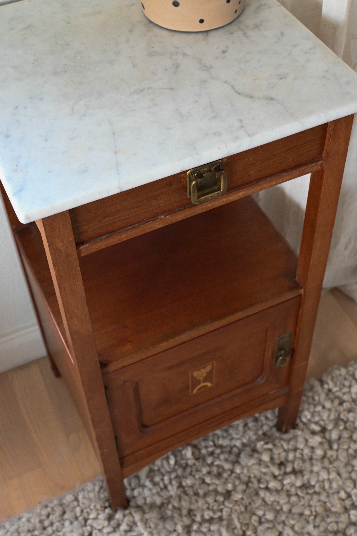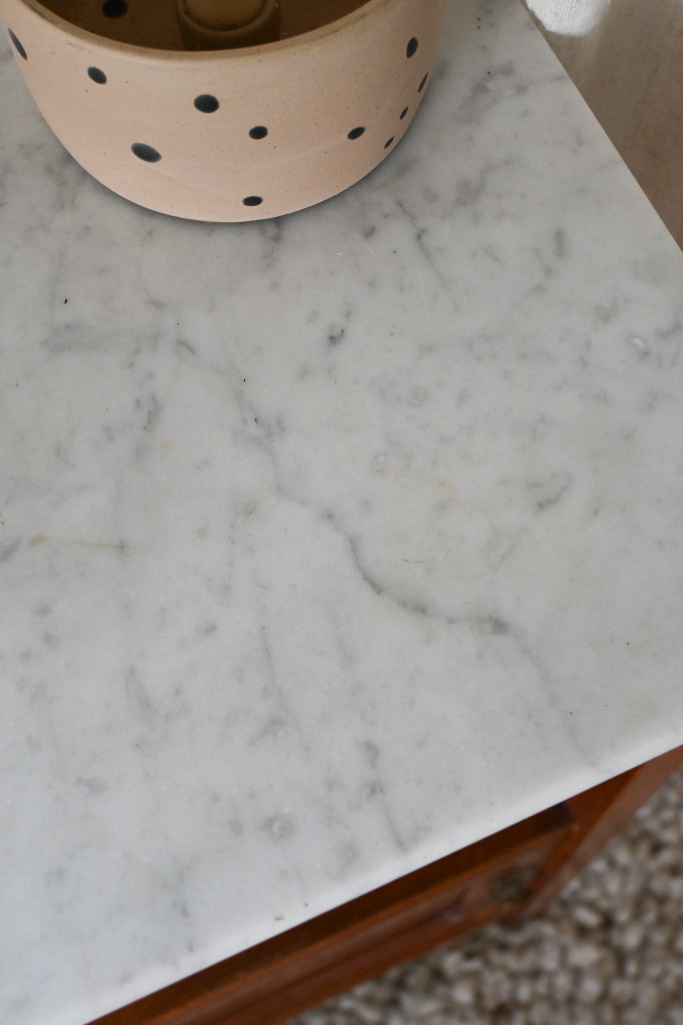 Skick: Bruksskick, mindre slitage & små fläckar på marmorskivan