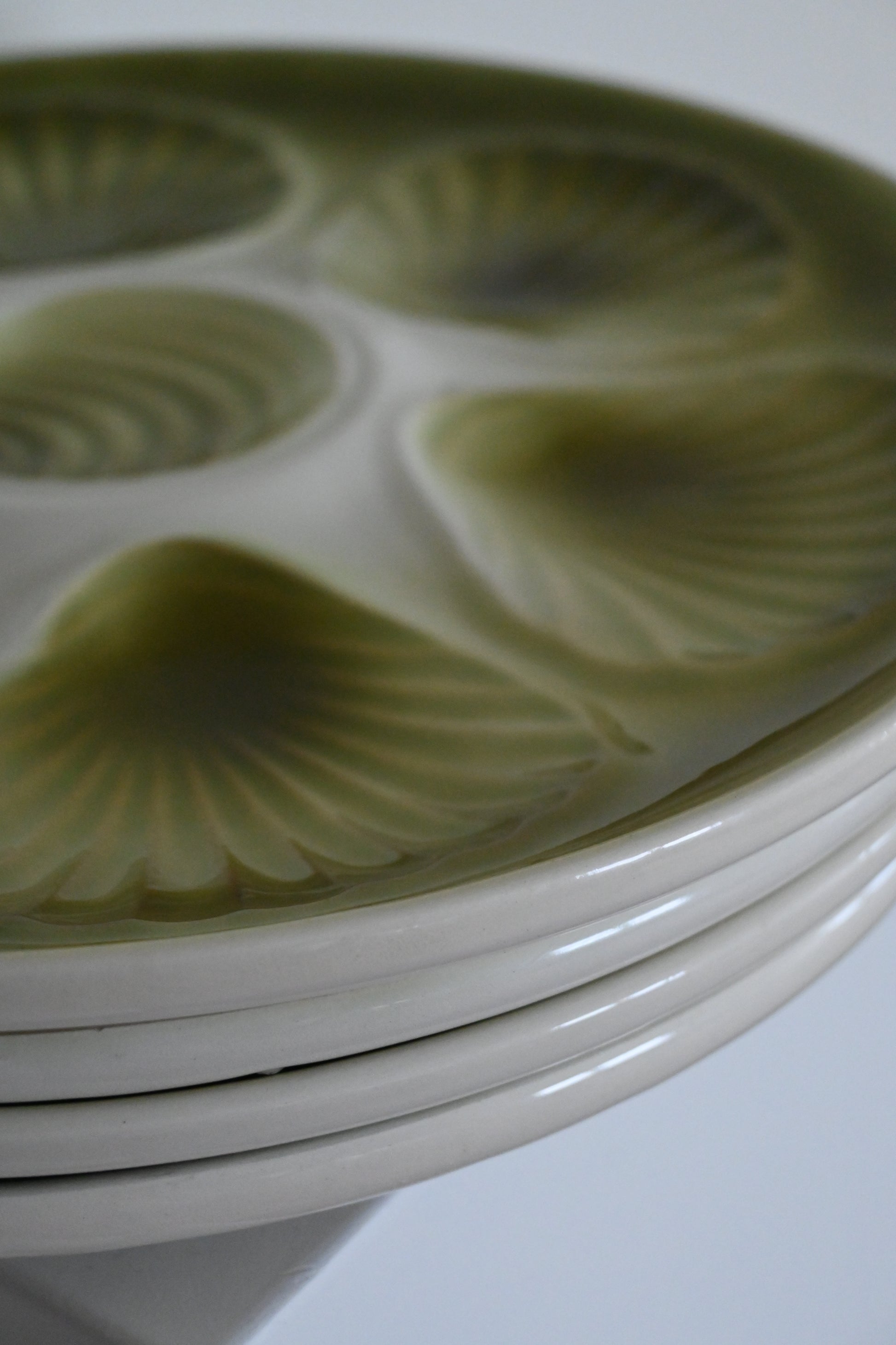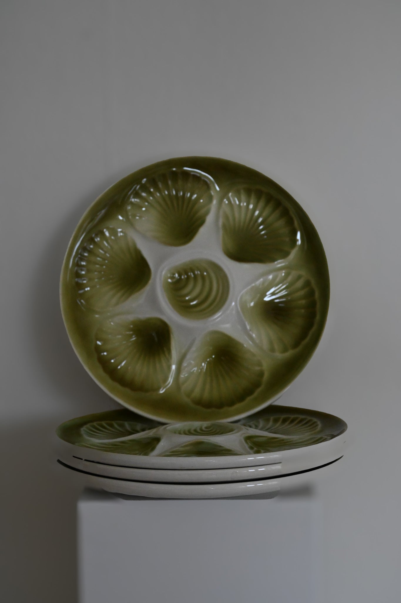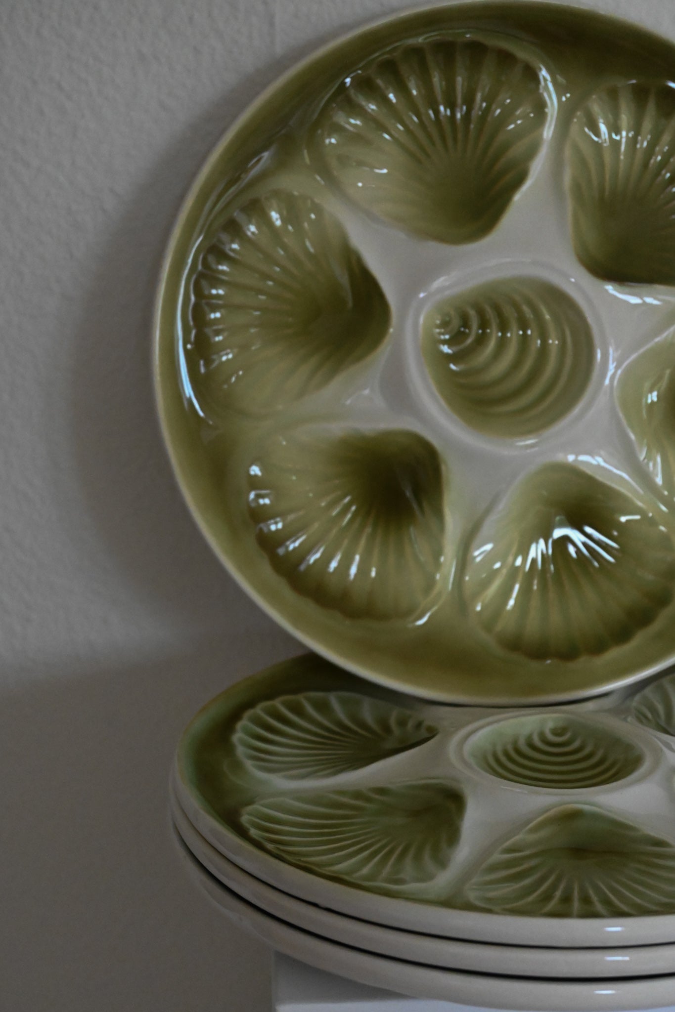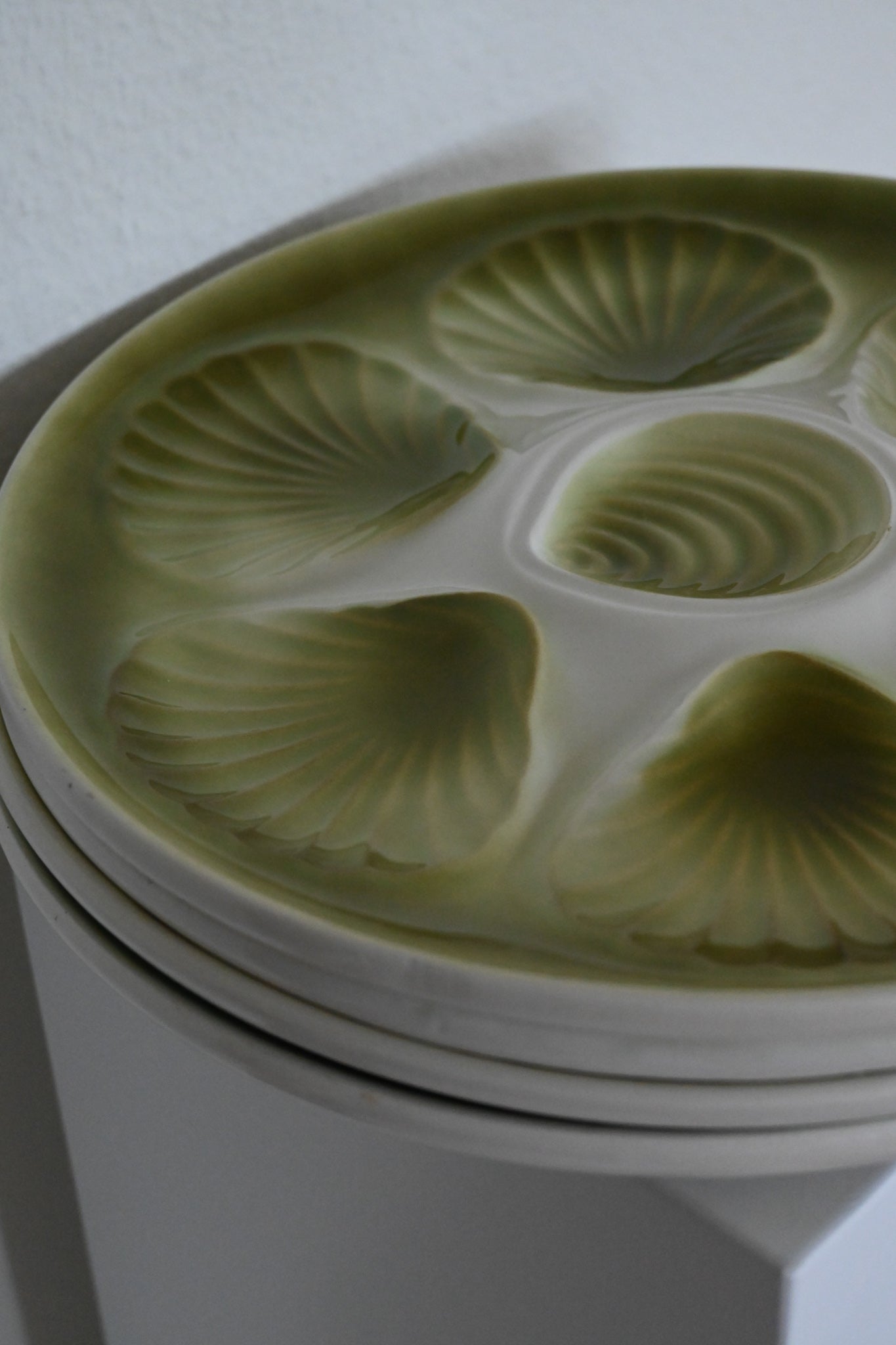 Grön skaldjurstallrik, form av pilgrimsmusslor
