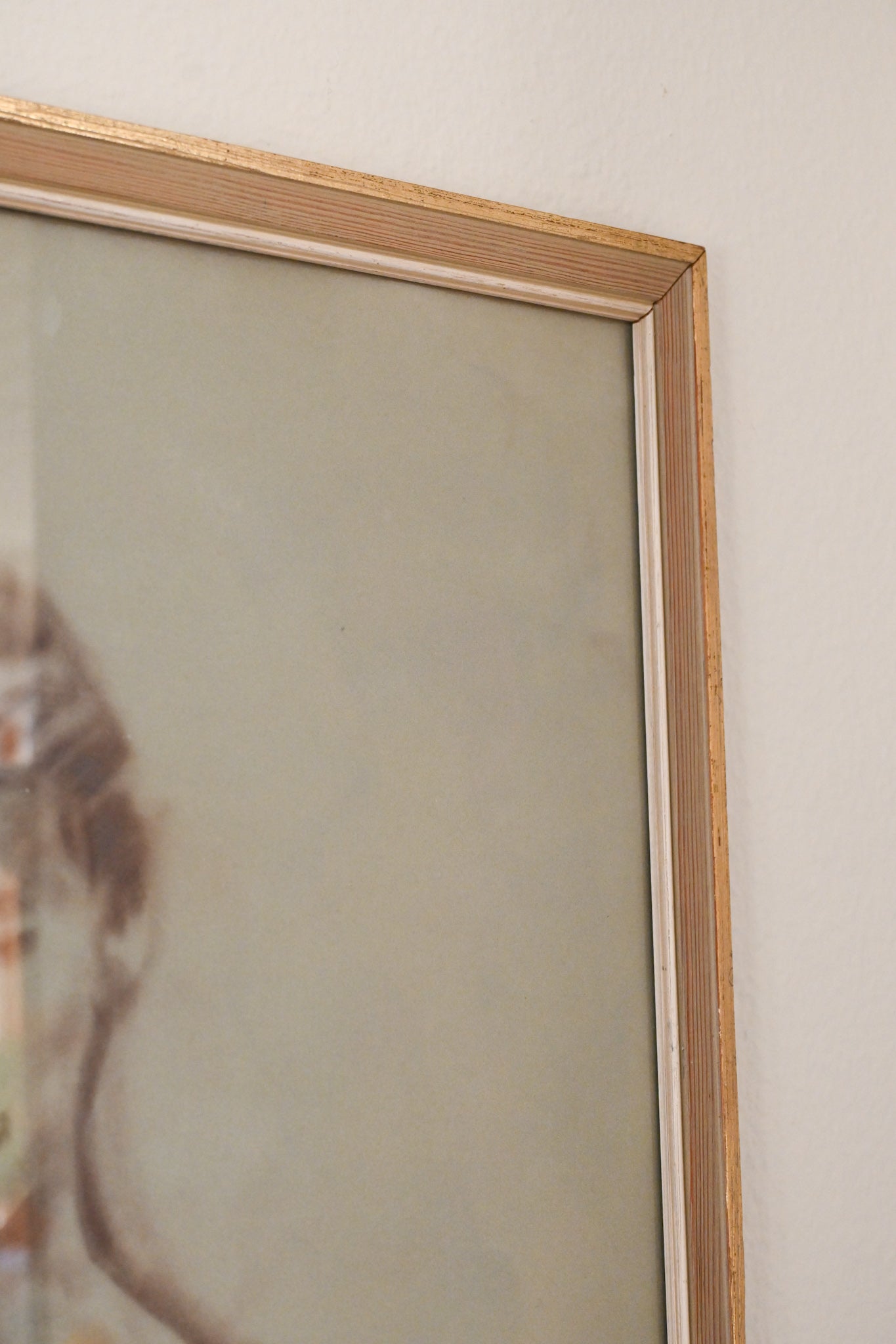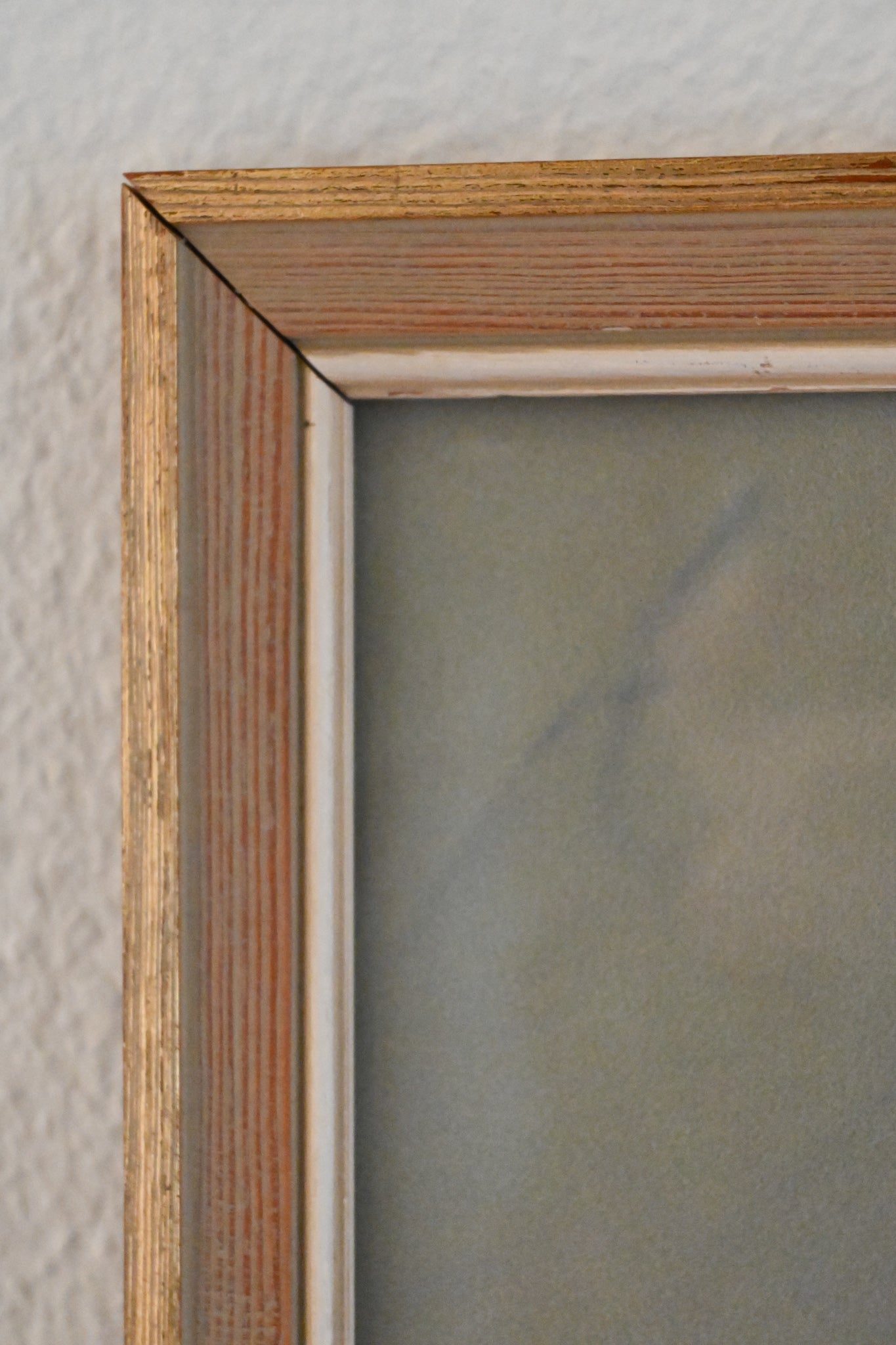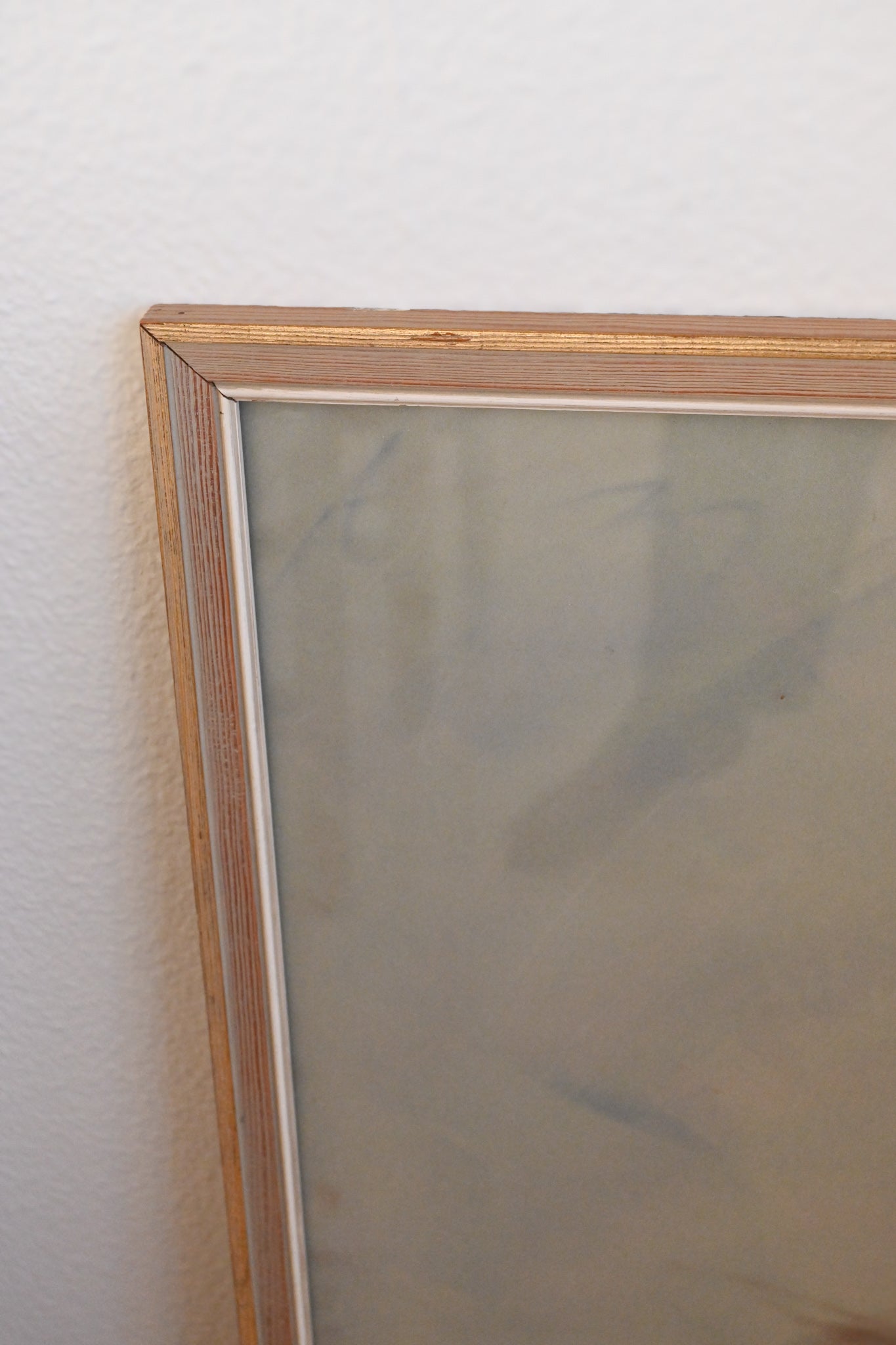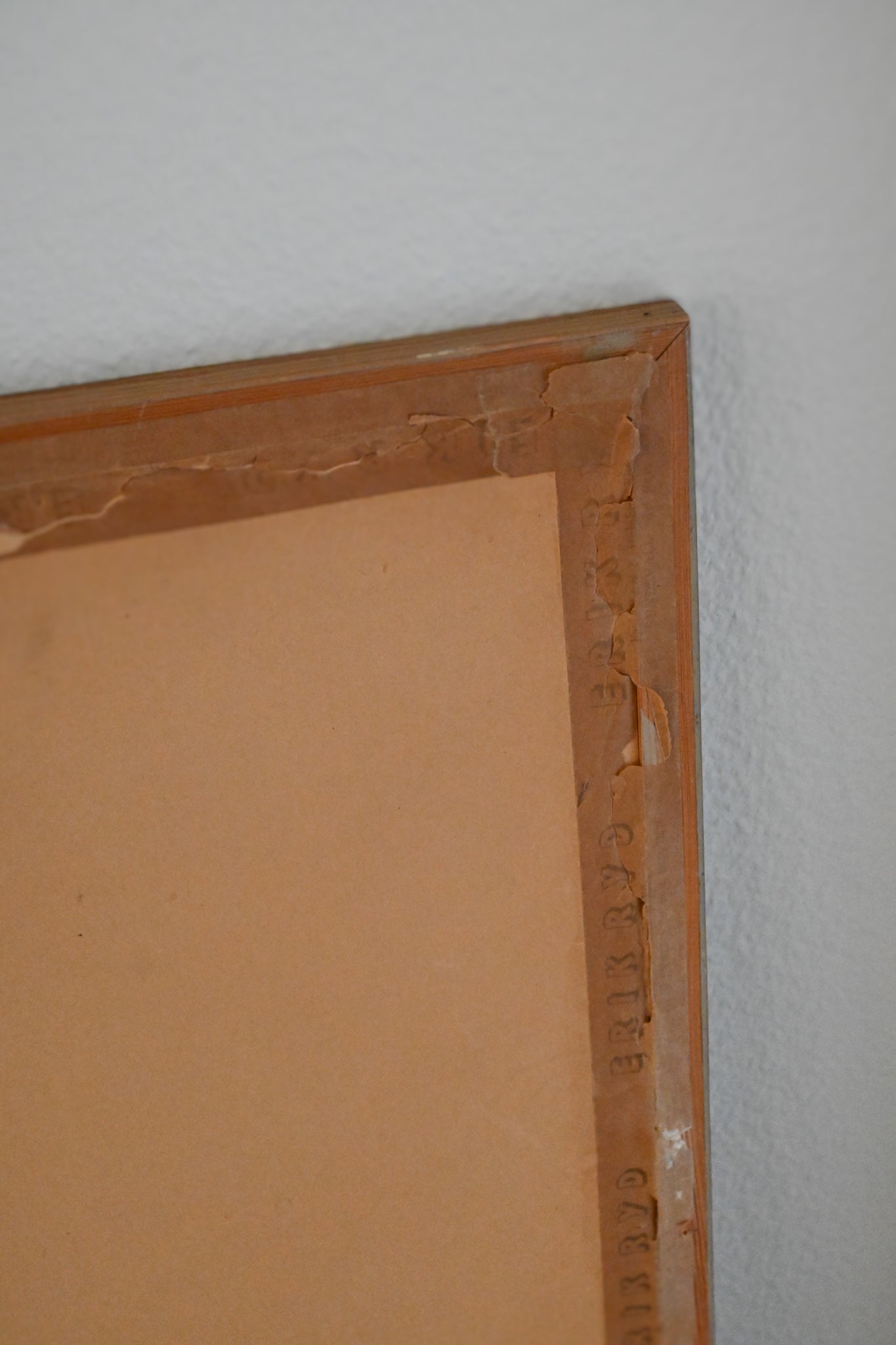 Skick: Fint bruksskick. Saknar upphängning på baksidan. Går att hänga direkt i ramen. Se även bilder på ramens hörn.
