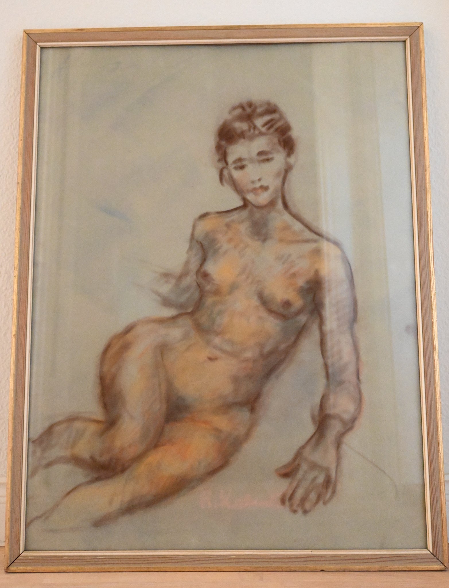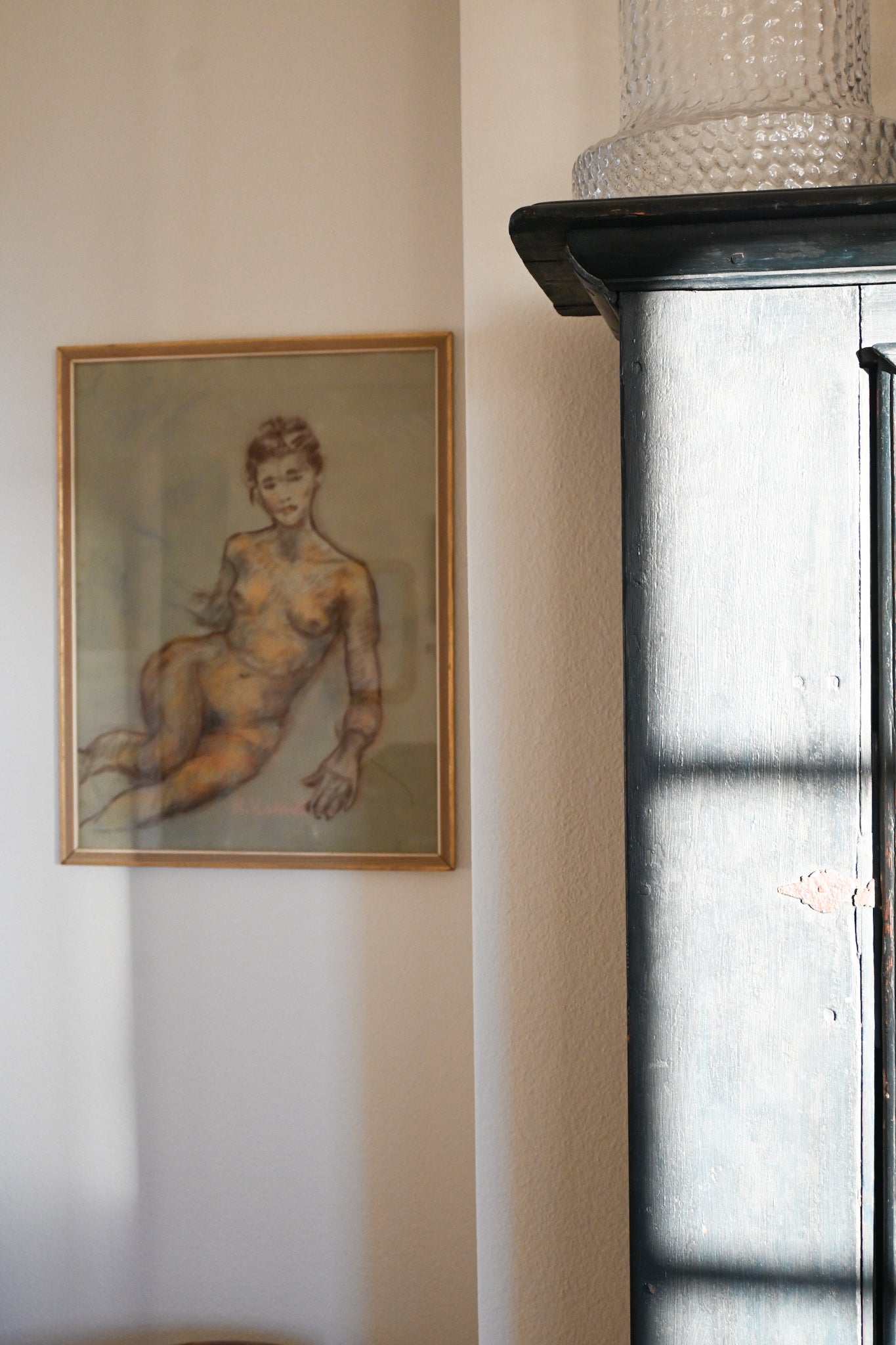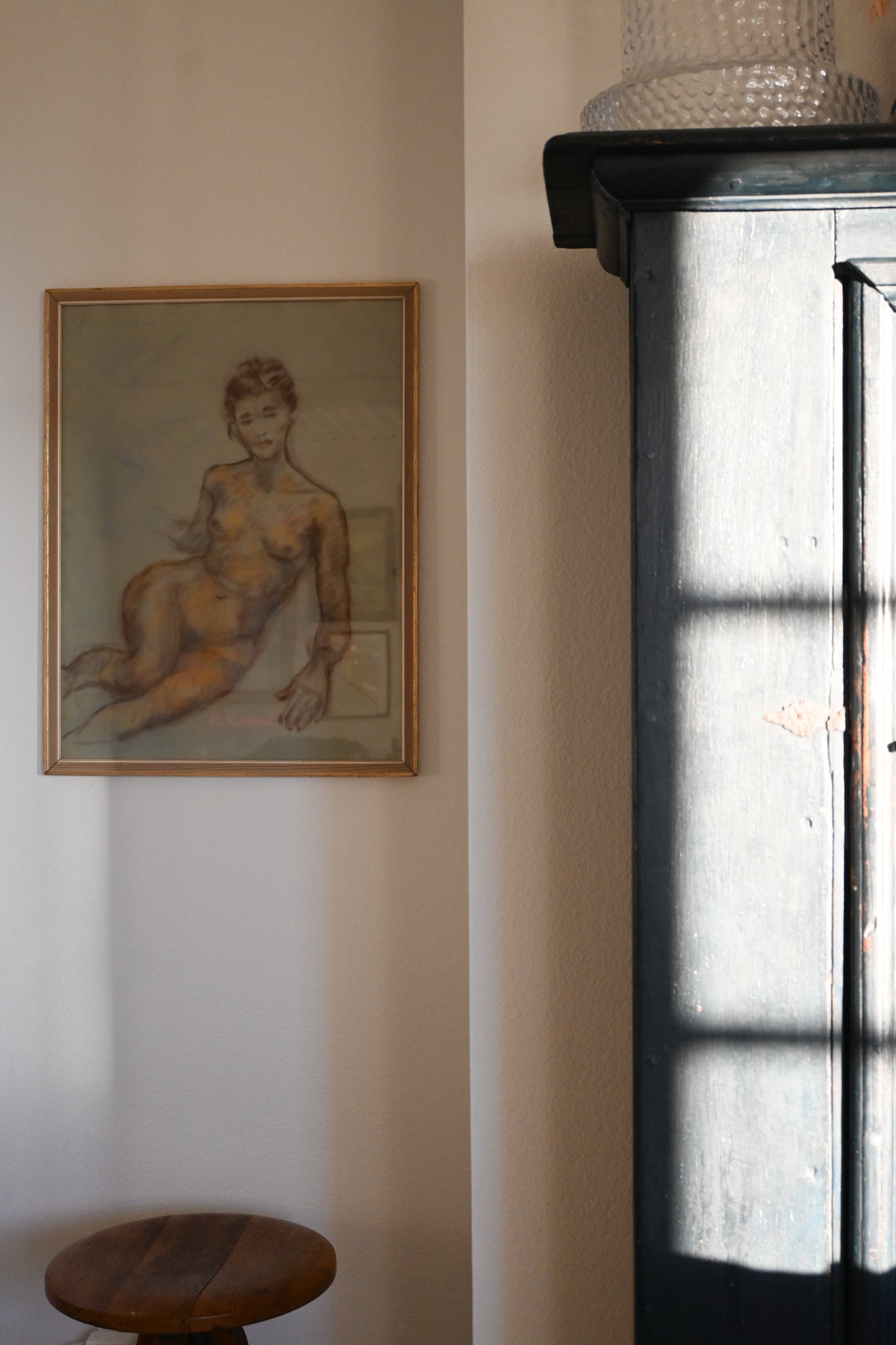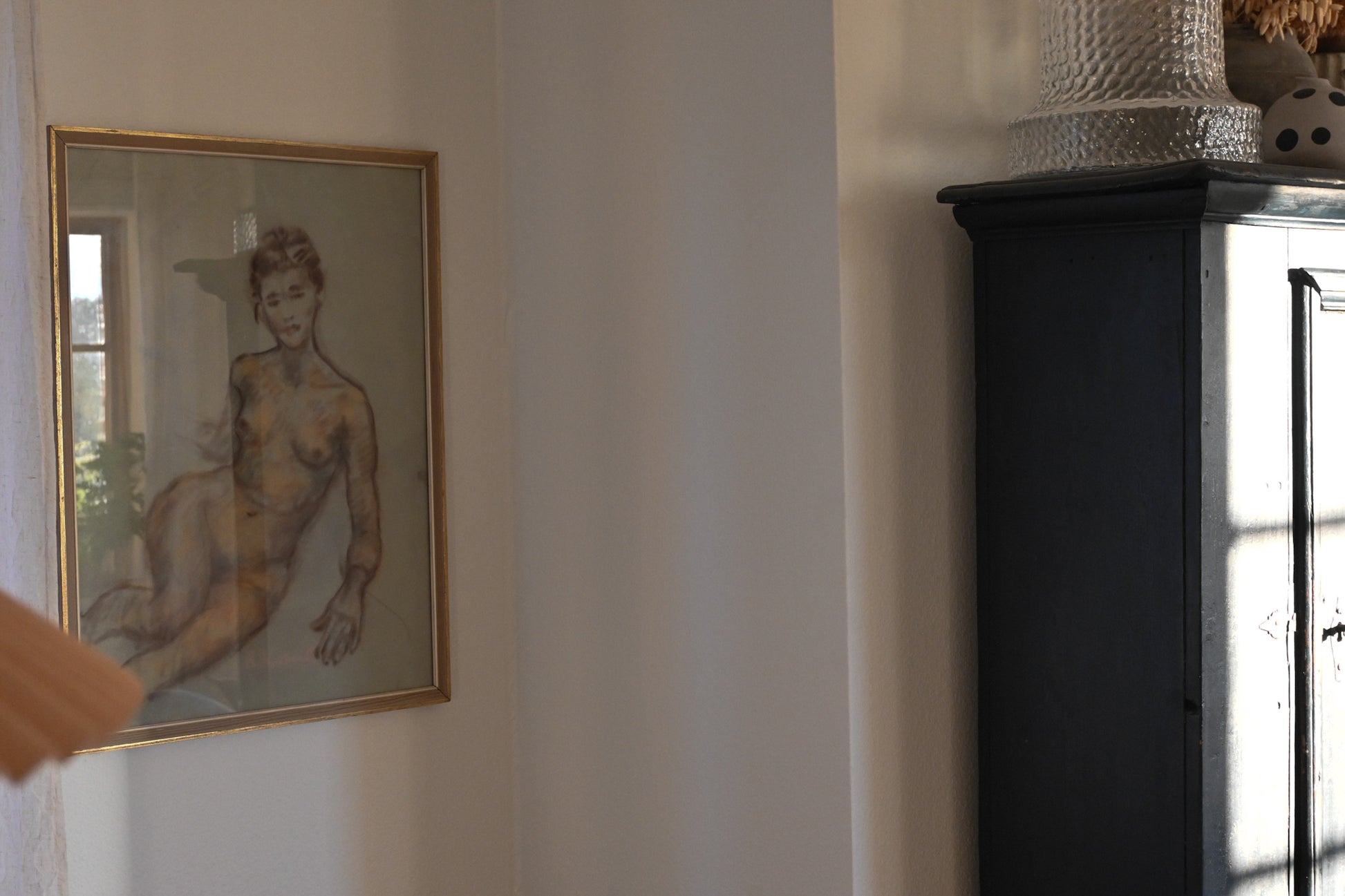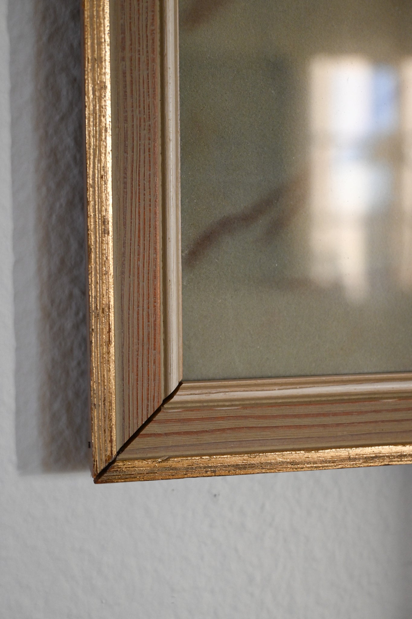 Skick: Fint bruksskick. Saknar upphängning på baksidan. Går att hänga direkt i ramen. Se även bilder på ramens hörn.